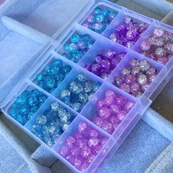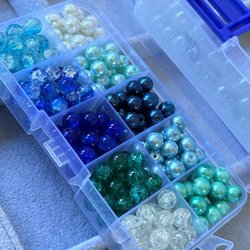 En box med glaspärlor, blå 8mm
