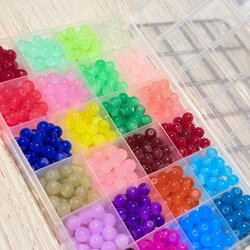 Box med ca 600 st glaspärlor 8mm