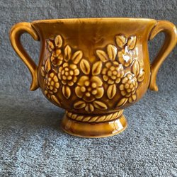 Brun blommig kruka med handtag,Fleur