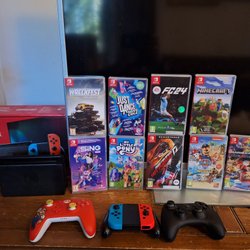 Nintendo Switch med spel och tillbehör