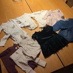 Klädpaket med bodys, byxor och klänningar storlek 56