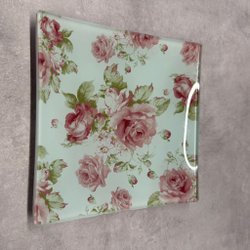 Lantligt glasfat med blommor, uppläggning