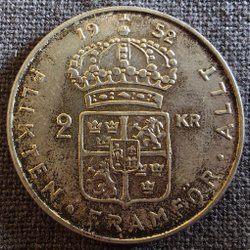 Tre svenska 2 kronor 1952, 1956 och 1957.