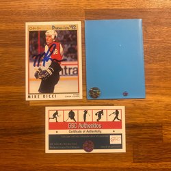 Hockeykort Mike Ricci Auto COA Premier 92 Absolut Toppskick