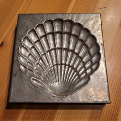 Gammal antik chokladform i plåt- Snäcka