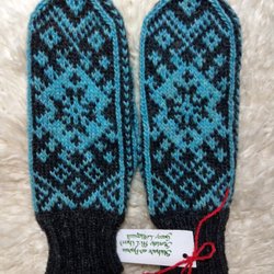 Jag stickar allt jag lägger ut till salu och försöker alltid ge en så bra beskrivning som möjligt på storlekar, material, färg, m.m. Ibland kan jag ta beställningar, då är det t.ex. ett par vantar i en annan färg/storlek än på auktionen, etc. Jag tar inte beställningar på tröjor och större plagg.