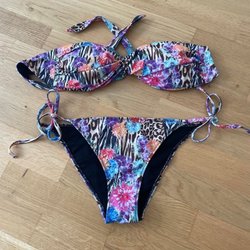 Mörkblå jumpsuit med blommor från H&M, storlek 36