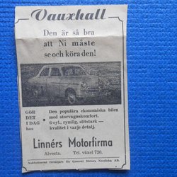 Annons Vauxhall Linners Motorfirma Alvesta