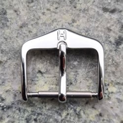 Klockspänne i vitmetall, Hirsch, 16mm, silverfärgat