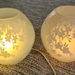 Bordslampor i glas med blommotiv, handgjorda, IKEA