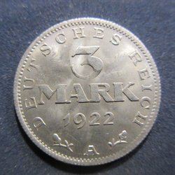 TYSKLAND 3 MARK 1922 A (TOPPEXEMPLAR!!!