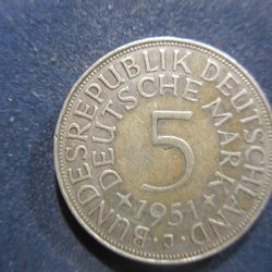 SILVERMYNT (TYSKLAND 5 MARK 1951 J