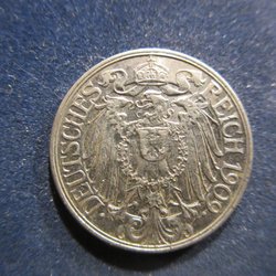 TYSKLAND 25 PFENNIG 1909 D (TOPPEXEMPLAR!!!