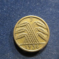 TYSKLAND 5 REICHSPFENNIG 1936 J (TOPPEXEMPLAR!!!