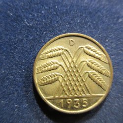 TYSKLAND 10 REICHSPFENNIG 1935 D (TOPPEXEMPLAR!!!