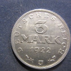 TYSKLAND 3 MARK 1922 J (TOPPEXEMPLAR!!!