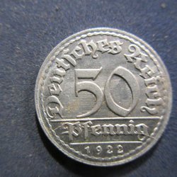 TYSKLAND 50 PFENNIG 1922 D (TOPPEXEMPLAR!!!