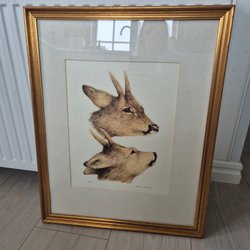 Jättefin tavla med rådjur Lennart Sand signerad