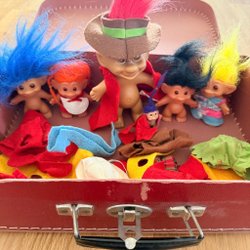 Vintage Dam Troll Dockor med Kläder i Väska