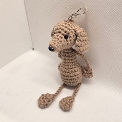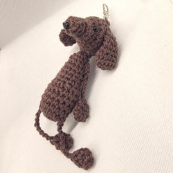 Handvirkad Hund Tax mörkbrun Nyckelring / Hänge