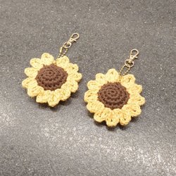 2 st handgjorda solros nyckelringar med guldfärgad hänge