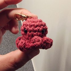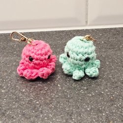 Två virkade bläckfiskar med nyckelring (hänge) - perfekt som present