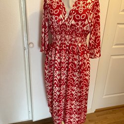 Röd/vit klänning 40,42