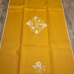 Linneduk/löpare i senapsgul med broderade blommor