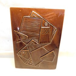 Keramik Tavla retro 1950 tal Konstkeramik tavla med fiskar