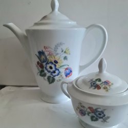Kanna och sockerskål med blommor