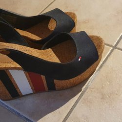 Tommy Hilfiger Kilklackssandaler i svart, storlek 39