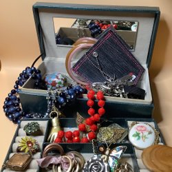 Smyckeskrin med innehåll - vintage och äldre