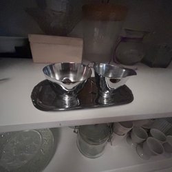 Gräddkanna och sockerskål på bricka