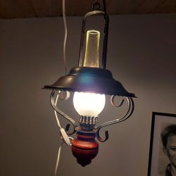 Taklampa. Koppar, trä och glas