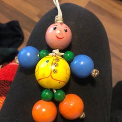 Färgglad träfigur med rörliga delar fån 90 talet