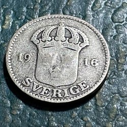 1916 Silver mynt 25 Öre 17mm Sweden