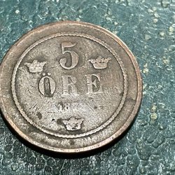 1879 Sweden 5 Öre Oscar II 27 mm 8 g