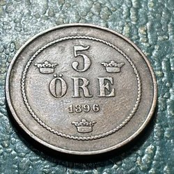 1896 Sweden 5 Öre Oscar II 27 mm 8 g