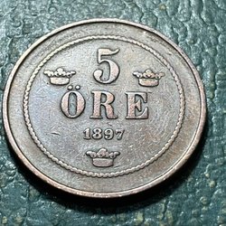 1897 Sweden 5 Öre Oscar II 27 mm 8 g
