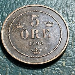 1898 Sweden 5 Öre Oscar II 27 mm 8 g