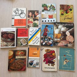 Tolv vintage kokböcker
