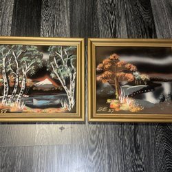 2 st tavlor – signerade BE 57 – retro landskapsmotiv