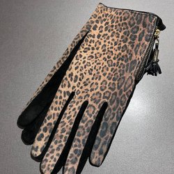 Statement handskar i svart mocka med leopardmönster