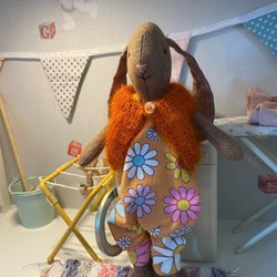 Stickad klänning till Maileg kanin som är 22cm lång