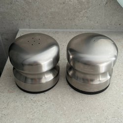 Salt- och pepparkar i rostfritt stål, vintage