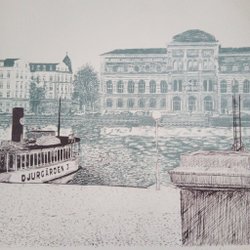 Litografi / Konsttryck signerad av Henri de Val - Djurgården Stockholm.