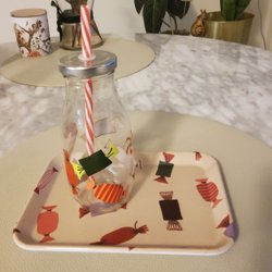 Bricka + burk med sugrör