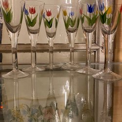 6 st snapsglas med tulpanmotiv