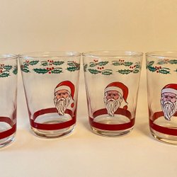 Luminarc, France, 4st vattenglas glögglas med tomte/juldekor.Retro. Jul.