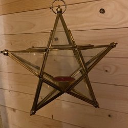 Hängande ljuslykta/ fönsterlykta Mässing & glas - Julstjärna